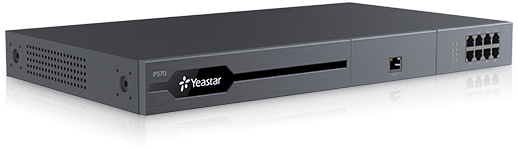 Yeastar P570 IP PBX — enterprise P-Series for 300 to 500 users and up to 120 concurrent calls. Dual E1/T1 with 16 analog ports. Full contact center with wallboard, SLA, and callback. The flagship on-premise PBX for large organizations.